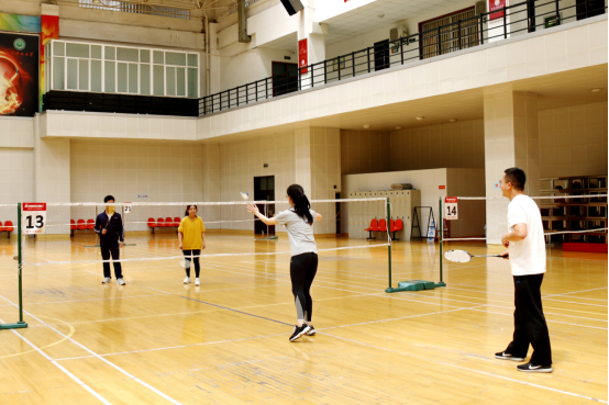 此次比赛分为预赛和决赛两个阶段,设立男子单打、女子单打、男子双打、女子双打、混合双打五个项目。共有26名羽毛球爱好者报名参加比赛。经过激烈角逐,最终赵继琛、井茜翕分别获得男女单打冠军,刘宇超、彭海峰和姬晓东、罗玉洁分别获得男女单打亚军、季军;井茜翕、刘宇超组合获得了混双冠军,王艺帆、彭海峰组合和黑婉玉、李明组合分别获得第二、三名;赵继琛、刘宇超和井茜翕、刘佳组合分别获得了男女双打冠军,党浩浩、李明和张萍萍、何娇组合分别获得男女双打亚军,彭海峰、朱国义和黑婉玉、罗玉洁组合分别获得男女双打季军。比赛间隙,还进行了师生友谊赛。