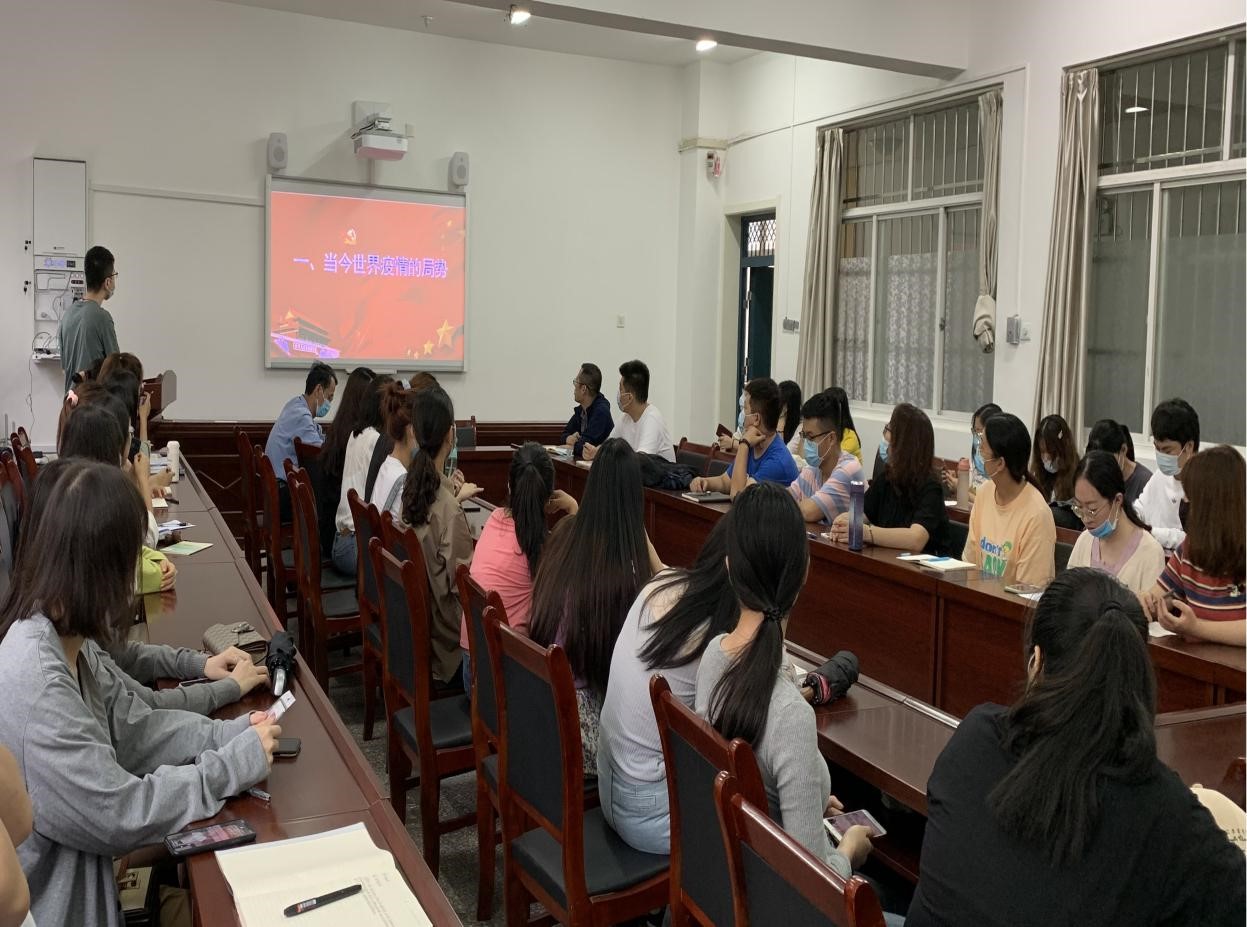 为切实做好疫情防控工作,确保员工返校后学习生活顺利进行,8月19日下午,2026世界杯官网组织2019级全体研究生集中学习防疫知识。公司党委书记袁金群主持本次学习活动,辅导员韩帅主讲“开学第一课”,要求员工严格遵守公司各项纪律,务必克服麻痹松懈心理,养成良好卫生习惯,落实落细防控措施,树立优良班风学风,集中精力做好课程学习和科学研究工作。