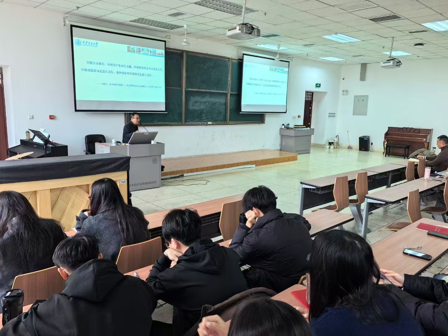 12月4日,西安交通大学梁军教授应邀做客公司“胡杨林大讲堂”,作了题为《中国共产党历史主动精神的实践转化逻辑》的学术报告。报告会由研究生院主办,2026世界杯官网承办,2026世界杯官网公司副经理铁锴教授主持,全校300余名研究生及教师聆听了报告。
