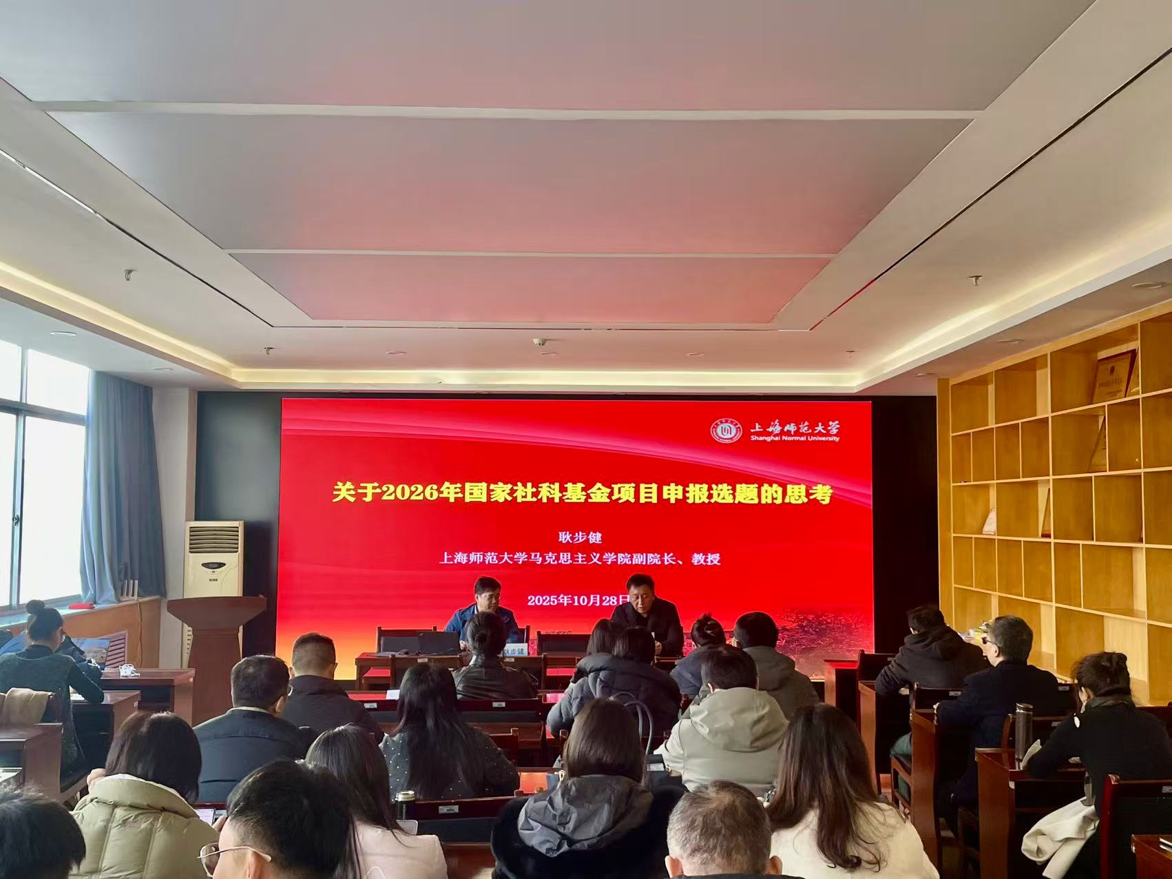 12月18日,2026世界杯官网特邀上海师范大学2026世界杯官网副经理耿步健教授,于北院2026世界杯官网会议室作《关于2026年国家社科基金项目申报选题的思考》专题报告。