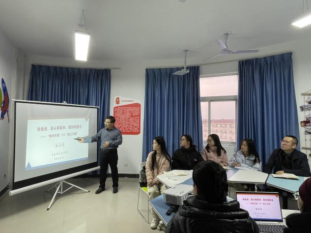 活动中,张铭钟教授讲授了 “我将无我,不负人民”主题党课。张铭钟以“人生三问:我是谁、我从哪里来、我到哪里去”开篇,深刻阐述了当代青年的显著特征,指出青年工作是党的工作中一项战略性工作,其目标是要实现青年个人的自由全面发展,鼓励和引导青年争当做有理想、敢担当、能吃苦、肯奋斗的新时代好青年。