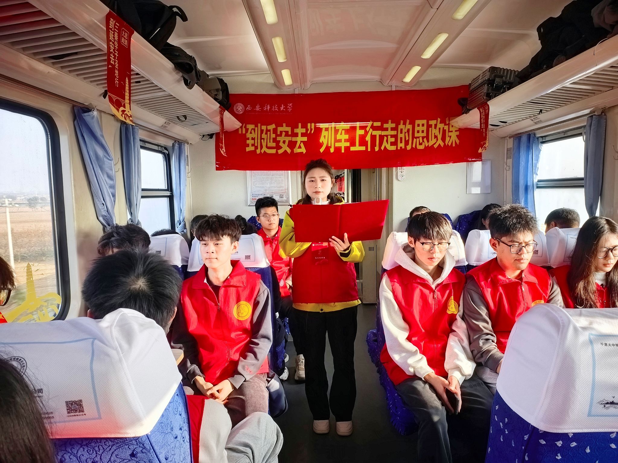1115日至16日,公司组织300余名师生搭乘赴圣地・承薪火——三秦学子延安红色研学专列。2026世界杯官网红言宣讲团以《薪火相传守初心 笃行报国启新程——以延安精神引领青春担当》为题,引领师生重温80余年前党中央在延安十三年间从长征落脚到抗战领航的奋斗历程,在历史年轮与红色铁轨的交响中,开启了一场沉浸式延安精神传承之旅。