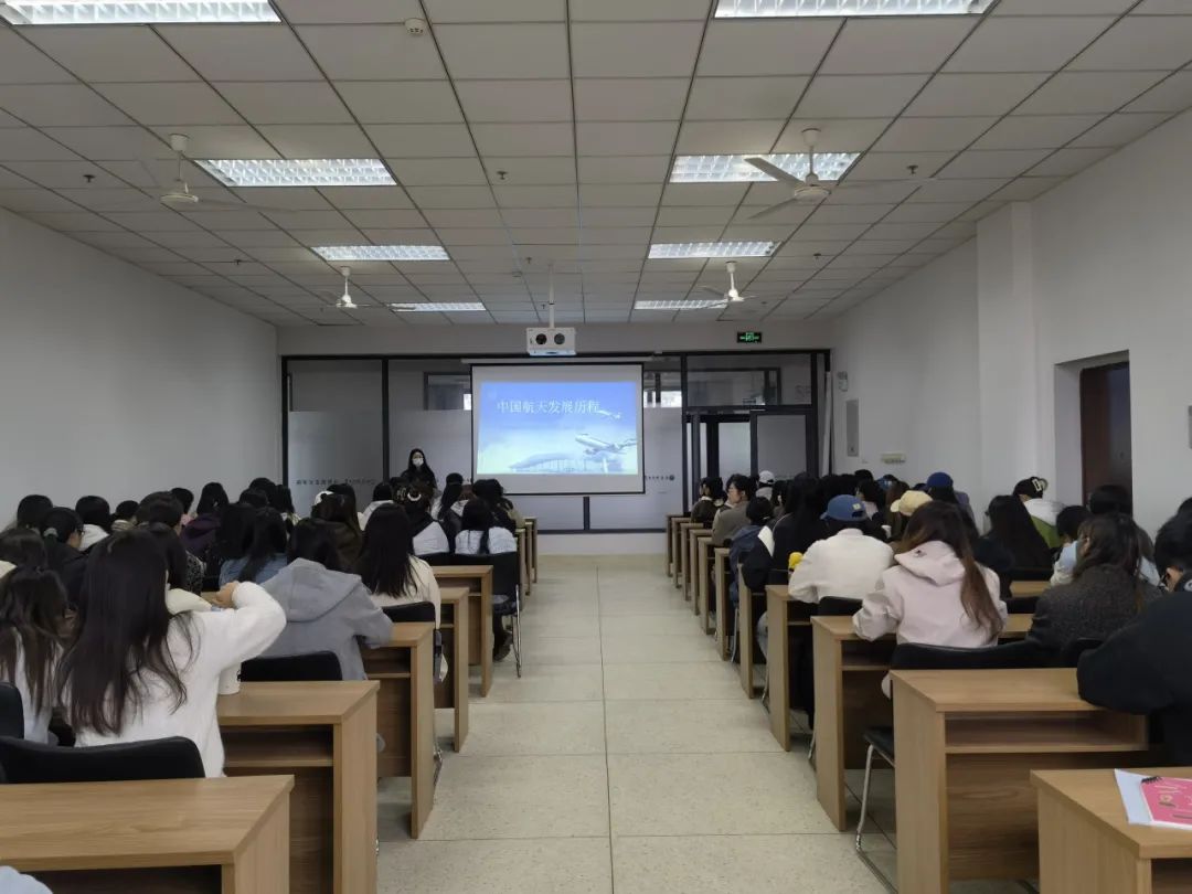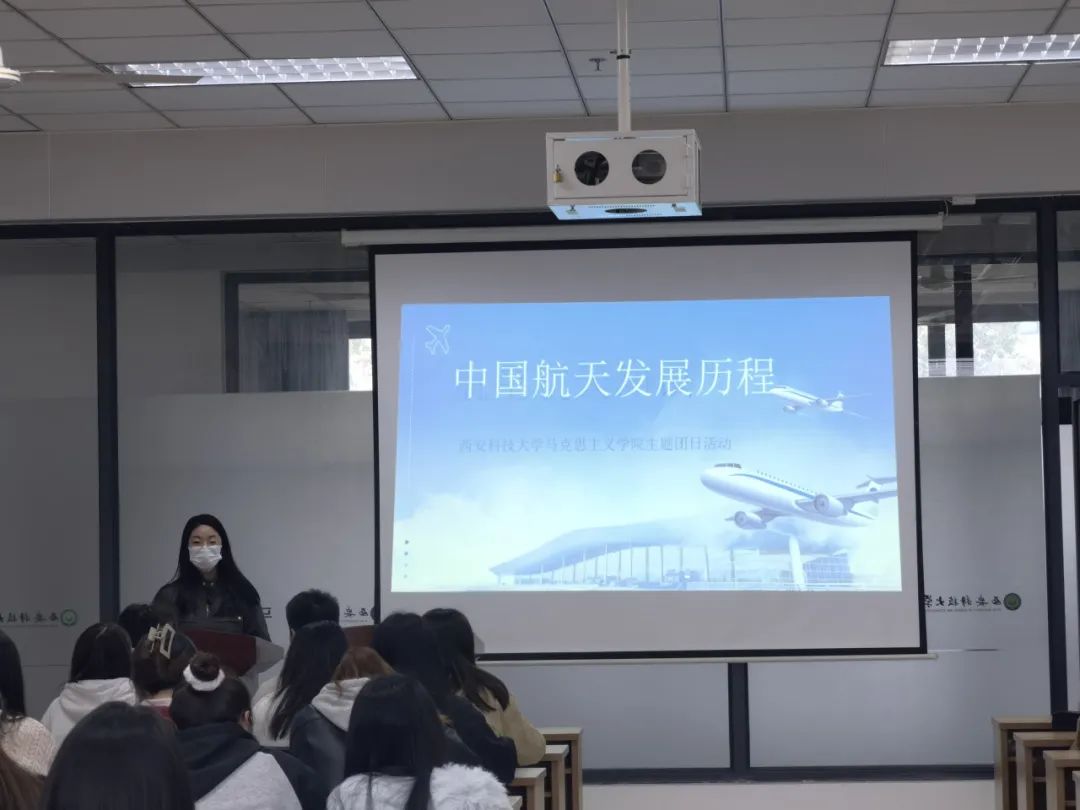 活动中,团支书张娜指出中国航天事业的发展不仅是国家科技进步的象征,更是民族复兴的重要组成部分,并通过图文并茂的展示和生动的讲解,详细介绍了中国航天的起步、发展、突破与未来展望,展示了中国航天从无到有、从弱到强的辉煌历程。