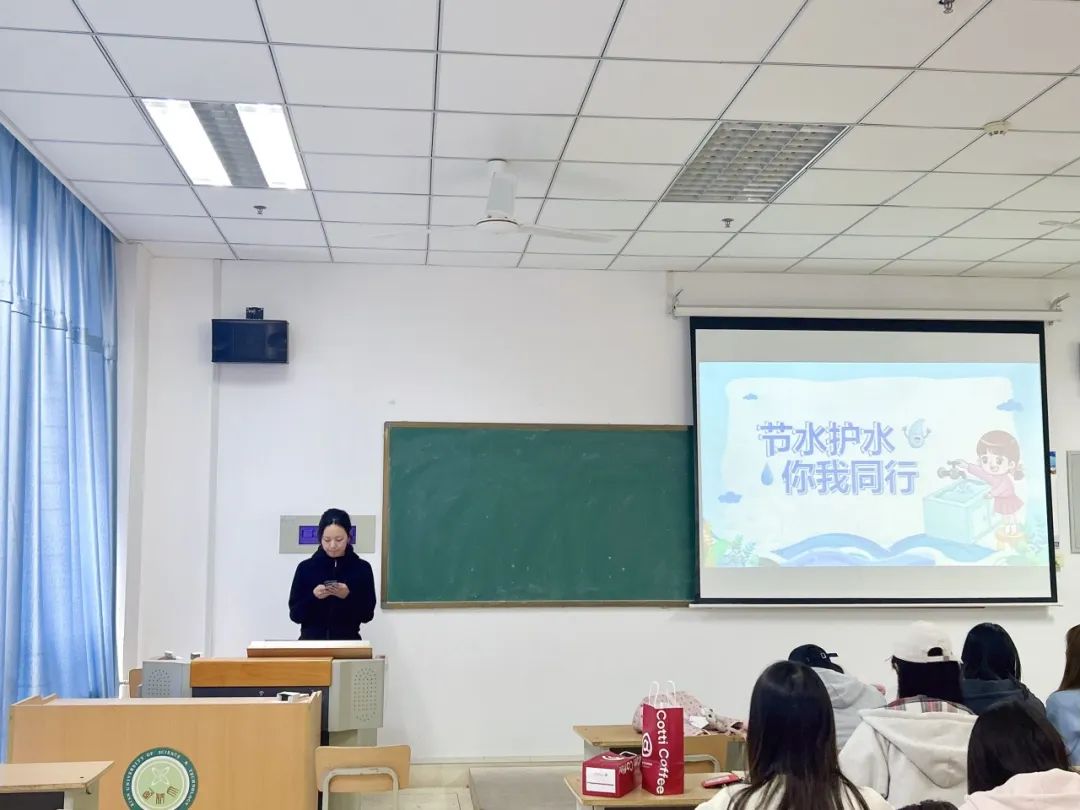 活动伊始,於汛同学详细讲解了我国水资源现状,还介绍了国家在工业、农业和生活用水方面采取的保护措施,如加强工业污染监管、控制农业面源污染、规范生活污水排放等,号召同学们增强水资源保护意识,倡导节约用水的绿色生活方式。
