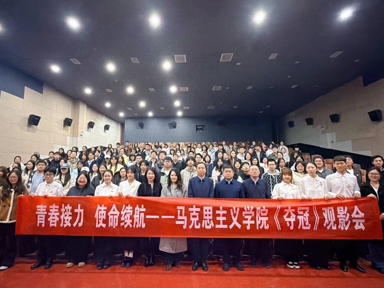 活动伊始,全体成员共同观看影片《夺冠》。影片生动再现中国女排历经风雨、顽强拼搏的奋斗历程,诠释了祖国至上、团结协作、顽强拼搏、永不言败的女排精神。荧幕上的热血瞬间、赛场内外的坚守与执着,深深打动在场每一位同学。大家在光影中感悟奋斗力量,明白青春唯有迎难而上、奋勇争先,方能不负时代、不负韶华。