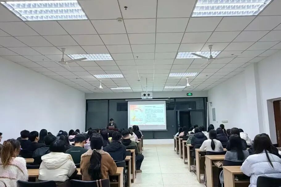 活动中,郭睿璞同学围绕2026年全国两会精神,结合“十五五”时期国家发展重点部署,与同学们交流学习规划纲要草案的核心要点与青年关切,引导大家立足青年视角关注国家发展方向,把个人成长与国家发展紧密结合。随后,他聚焦雷锋精神的时代内涵,领学习近平总书记关于弘扬雷锋精神的重要论述,阐释“奉献、友爱、互助、进步”的志愿精神,分享雷锋式模范人物的先进事迹,勉励大家将雷锋精神融入日常、化作经常。活动最后,全体同学共同学习“共建美丽校园 涵养文明新风”倡议,约定以实际行动参与校园环境治理、规范日常言行,守护美丽校园。