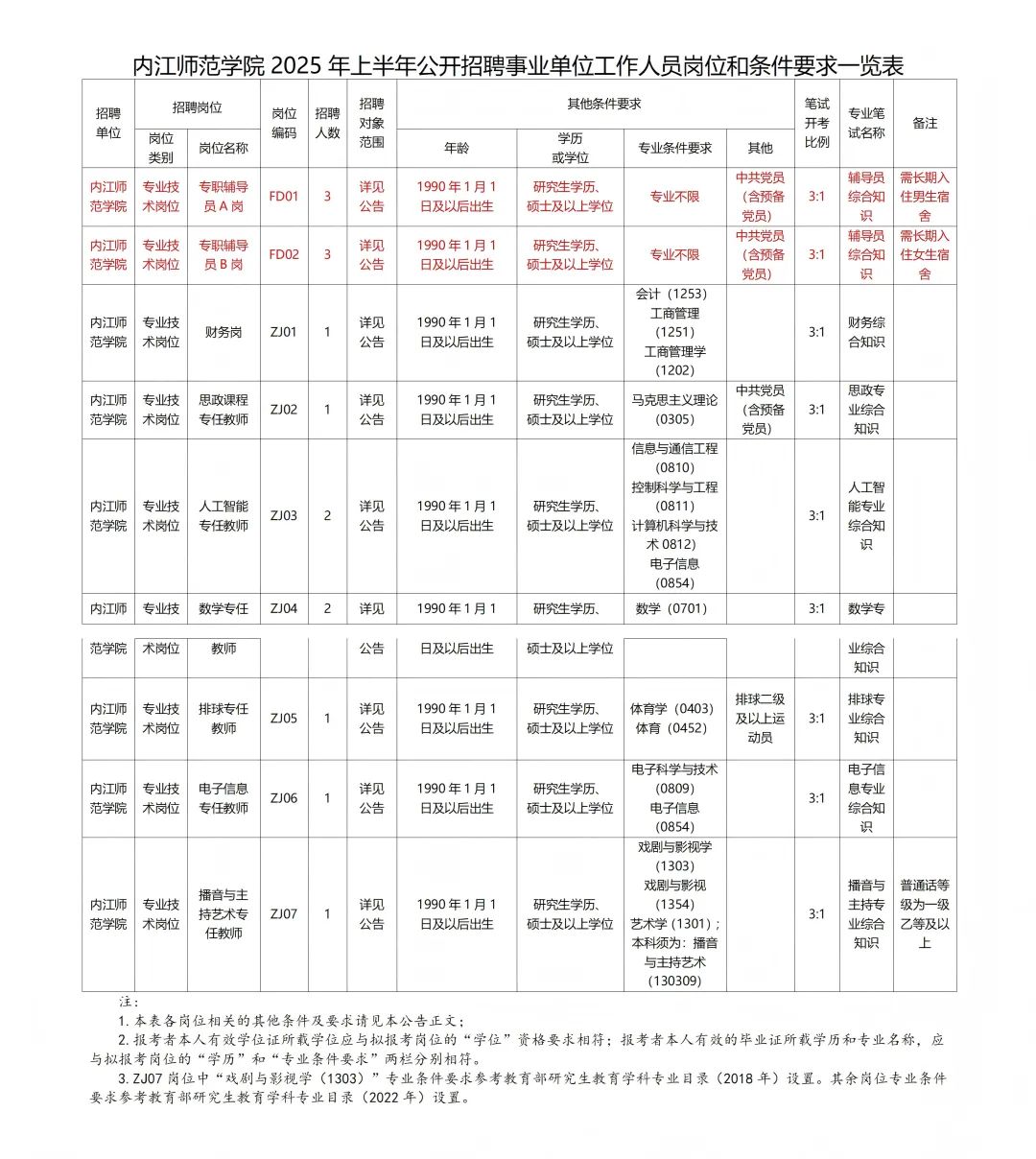 根据《事业单位人事管理条例》、《事业单位公开招聘人员暂行规定》和《四川省事业单位公开招聘工作人员实施办法》等有关规定,经四川省教育厅备案,我单位拟面向社会公开招聘15名事业单位工作人员。现将公开招聘有关事项公告如下(本公告同时在四川省人力资源和社会保障厅(以下简称省人社厅)官网[http://rst.sc.gov.cn,下同]“人事考试”专栏、省教育厅官网[http://edu.sc.gov.cn,下同]和内江师范公司网[https://www.njtc.edu.cn,下同]上发布)。