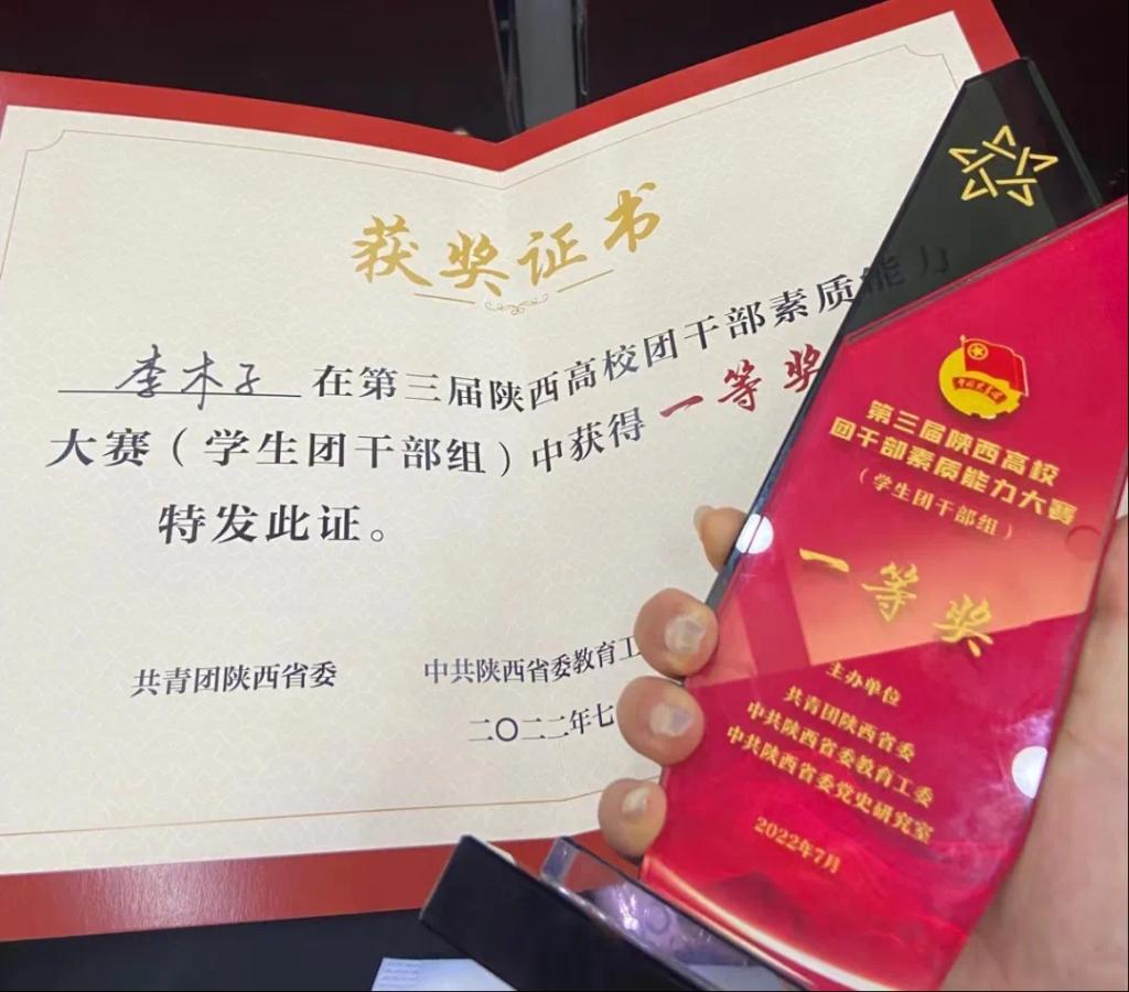 7月2日,由共青团陕西省委、中共陕西省委教育工委、中共陕西省委党史研究室主办的第三届陕西高校团干部素质能力大赛决赛在西北工业大学友谊校区举行。公司2021级硕士研究生团支部书记李木子过关斩将,在672件作品中以优异的成绩进入复赛,经过现场微团课讲授、案例分析等环节后,荣获员工团干部组一等奖。