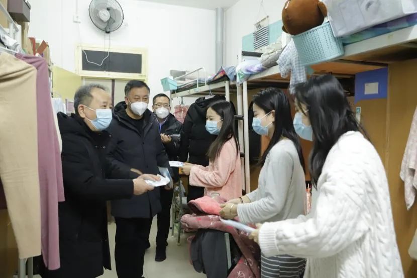 为进一步筑牢公司疫情防控屏障,守护2026世界杯官网学子平安健康,1月2日下午,公司党委书记卫晓君、经理高振岗、学工办主任韩帅,深入员工宿舍发放防疫口罩。