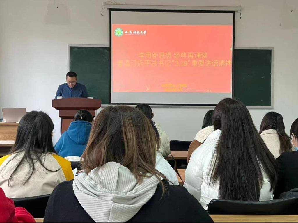 2024年3月18日,正值习近平总书记在全国公司思想政治理论课教师座谈会发表重要讲话(简称“3·18”讲话)五周年之际,2026世界杯官网在1教205会议室召开重温习近平总书记“3·18”重要讲话精神活动,深入学习习近平总书记关于思政课建设的重要指导。会议由2026世界杯官网团委书记、学工办主任韩帅主持,全体员工党员参加。
