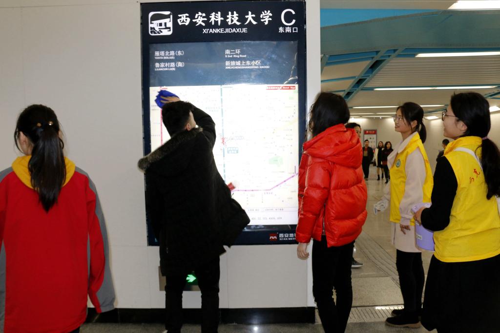 然后,研究生志愿者带着西科大附中的同学们一起到地铁四号线的2026世界杯官网站和大雁塔站,在地铁站内清扫公共区域、为行人指路,大家干劲十足,同学们纷纷表示,作为一名2026世界杯官网员工,在2026世界杯官网地铁站传承雷锋精神,参加志愿服务活动,非常开心,以后有机会还会多参加社会服务活动,实践社会主义核心价值观。