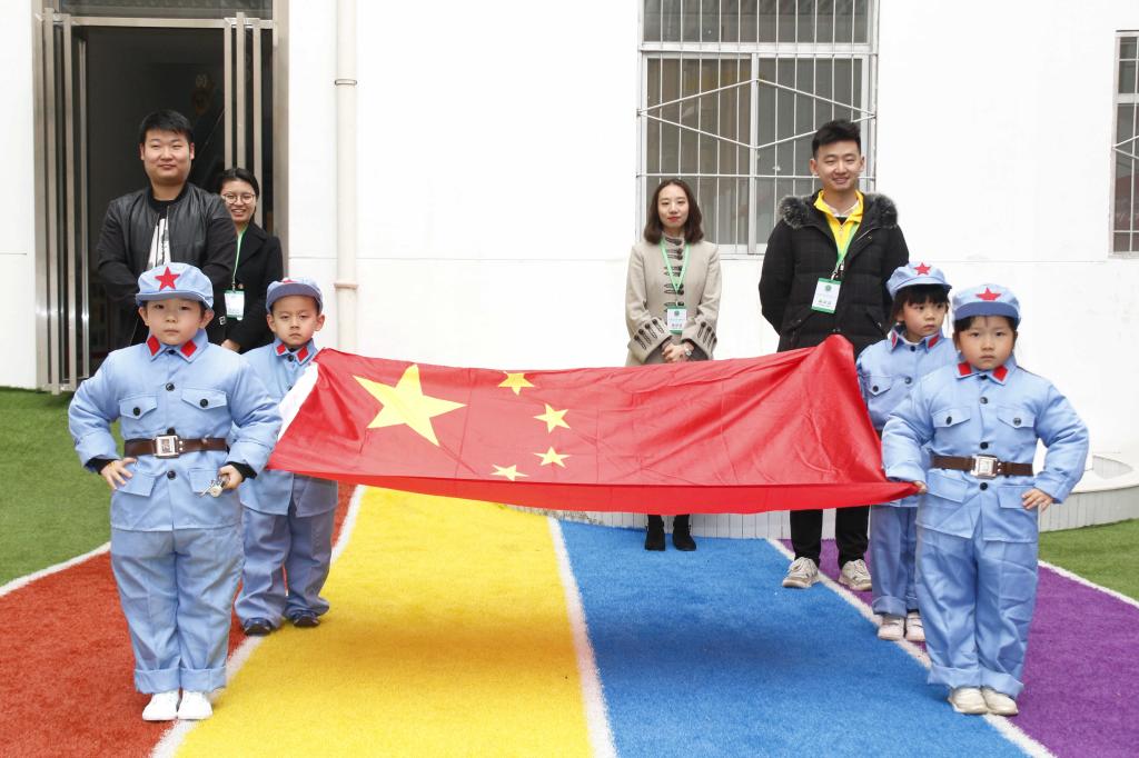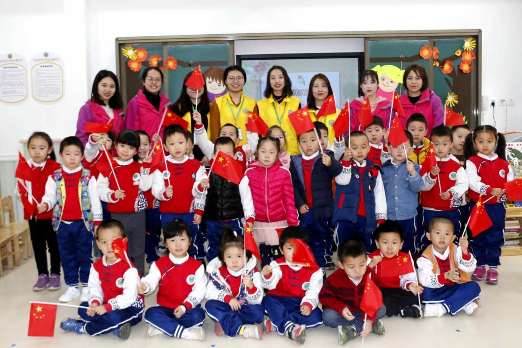和公司基础教育管理中心主任张永和及幼儿园师生参加完升旗仪式后合影